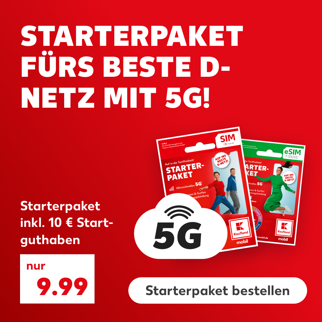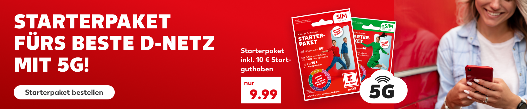 - 1Starterpaket für nur 9.99 €¹ als SIM oder eSIM bestellen.