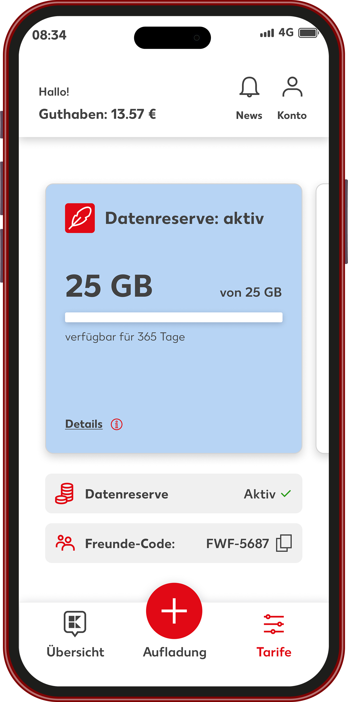 Die Datenreserve wird dir als “aktiv” auf deiner Übersicht angezeigt. Wenn dein Datenvolumen verbraucht ist, aktiviert sich deine Datenreserve automatisch!